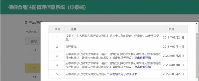 2022年8月30日,我司工作人員到審評中心大廳為委托我司申報的合作伙伴成功領取保健食品注冊證書。該產(chǎn)品系2018年2月提交受理,6月獲得審評意見,8月遞交補充資料。2021年被抽中動態(tài)核查試點,我司指導企業(yè)充分準備,現(xiàn)場核查順利通過,抽檢樣品也復核通過!2022年3月通知校對批準證書及其附件內(nèi)容,6月發(fā)布證書公告。