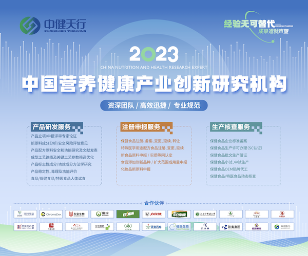 北京中健天行醫(yī)藥科技有限公司是一家專(zhuān)注于保健食品、新食品原料、特殊醫(yī)學(xué)用途配方食品等醫(yī)藥健康產(chǎn)品的技術(shù)研發(fā)、注冊(cè)申報(bào)及成果轉(zhuǎn)化的合同研究機(jī)構(gòu)(CRO),深耕營(yíng)養(yǎng)健康研發(fā)申報(bào)領(lǐng)域10余年,長(zhǎng)期與政府部門(mén)、行業(yè)協(xié)會(huì)、科研機(jī)構(gòu)和審評(píng)專(zhuān)家密切合作,不僅與中國(guó)檢驗(yàn)檢疫科學(xué)研究院、中國(guó)中醫(yī)科學(xué)院等搭建權(quán)威研發(fā)平臺(tái),還擁有自己的北京老品牌中試OEM基地,特食檢測(cè)網(wǎng),51批文網(wǎng),建立了全鏈條、一站式的技術(shù)創(chuàng)新和服務(wù)體系,為產(chǎn)品成功申報(bào)提供了強(qiáng)有力的技術(shù)支撐和資源保障。