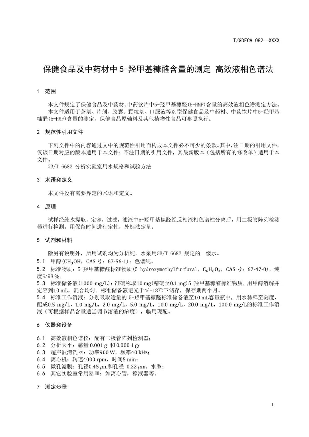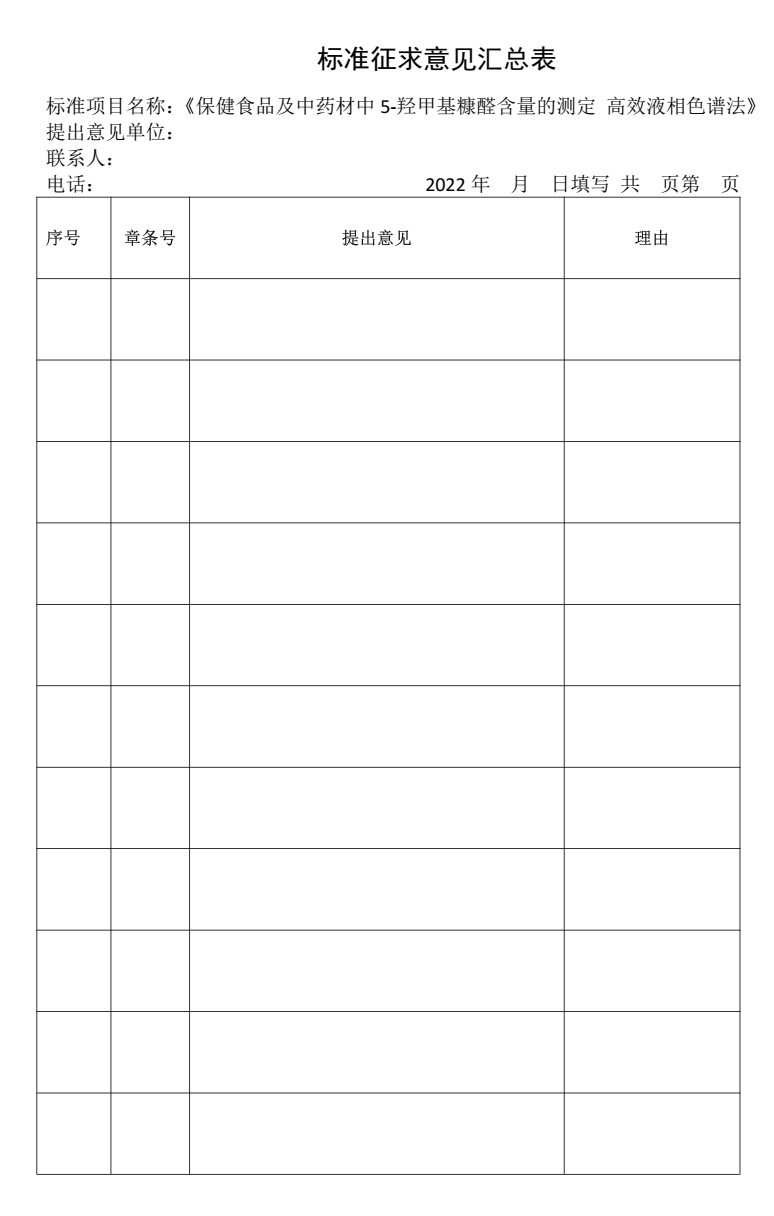 附件1、《保健食品及中藥材中5-羥甲基糠醛含量的測定 高效液相色譜法》(征求意見稿)