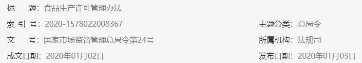 市場總局正式發(fā)布《食品生產(chǎn)許可管理辦法》自2020年3月1日起施行
