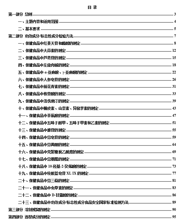 1.本指導(dǎo)原則規(guī)定了保健食品及其原料、輔料理化及衛(wèi)生指標(biāo)檢驗(yàn)與評(píng)價(jià)的基本要求、功效成分/標(biāo)志性成分檢驗(yàn)方法、溶劑殘留和違禁成分的測(cè)定要求。