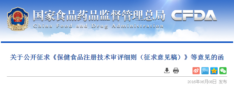為規(guī)范保健食品注冊(cè)技術(shù)審評(píng)工作,落實(shí)《中華人民共和國(guó)食品安全法》和《保健食品注冊(cè)與備案管理辦法》等法律法規(guī)要求,食品藥品監(jiān)管總局組織起草了《保健食品注冊(cè)技術(shù)審評(píng)細(xì)則(征求意見稿)》及注冊(cè)申請(qǐng)材料要求和相關(guān)證書文本格式(見附件),現(xiàn)公開征求意見,請(qǐng)于2016年6月17日前按照意見反饋模板提出修改意見并以電子郵件形式反饋我局。