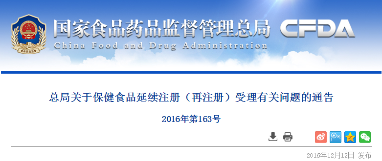 二、自2017年1月1日起申請延續(xù)注冊的,申請人應當嚴格按照《保健食品注冊與備案管理辦法》有關(guān)規(guī)定提出申請。