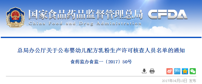 為加強(qiáng)嬰幼兒配方乳粉質(zhì)量安全監(jiān)管,嚴(yán)格嬰幼兒配方乳粉生產(chǎn)許可審查,確保各地嬰幼兒配方乳粉生產(chǎn)許可證有效期屆滿延續(xù)工作順利進(jìn)行,總局委托國家食品藥品監(jiān)督管理總局保健食品審評(píng)中心組織開展嬰幼兒配方乳粉生產(chǎn)許可核查人員培訓(xùn)考核工作。經(jīng)過培訓(xùn)考核,共207人符合要求,可以從事嬰幼兒配方乳粉生產(chǎn)許可核查工作,現(xiàn)將人員名單予以公布(見附件),自公布之日起,有效期為三年。各省級(jí)食品藥品監(jiān)督管理部門要按照有關(guān)規(guī)定和總局要求,從名單中選取核查人員開展嬰幼兒配方乳粉生產(chǎn)許可現(xiàn)場核查工作。