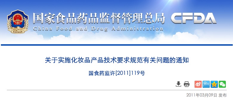 根據(jù)《化妝品產(chǎn)品技術(shù)要求規(guī)范》(國食藥監(jiān)許〔2010〕454號)等有關(guān)要求,為規(guī)范化妝品行政許可工作,方便申請人申報,現(xiàn)通知如下: