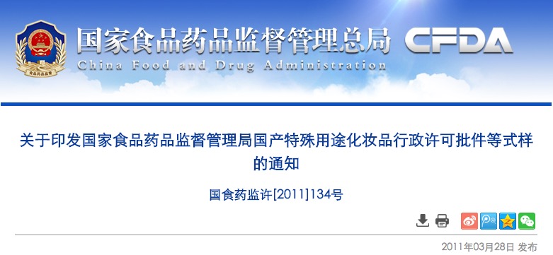 自2011年4月1日起受理的化妝品行政許可(備案)申請,按照本通知執(zhí)行。