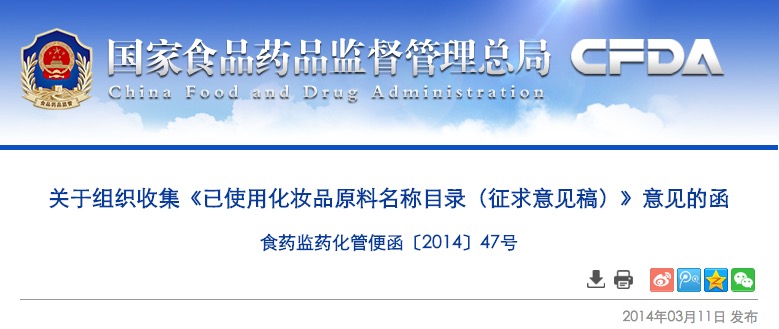 我司發(fā)布《關于征求《已使用化妝品原料名稱目錄(征求意見稿)》意見的函》(食藥監(jiān)藥化管便函〔2014〕11號)后,化妝品行業(yè)積極響應,提出了一些建議,我司已組織進行梳理分析工作。為了全面、深入地征求社會各界意見,特別是國產(chǎn)非特殊用途化妝品生產(chǎn)企業(yè)的意見,經(jīng)研究,我司決定請各省局組織開展意見征求工作,現(xiàn)將有關事宜函告如下: