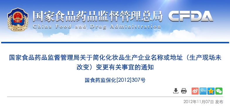 為加強(qiáng)化妝品行政許可管理,進(jìn)一步提高許可工作效率,方便行政相對(duì)人,根據(jù)《化妝品衛(wèi)生監(jiān)督條例》等有關(guān)規(guī)定,在原有申報(bào)要求不變的基礎(chǔ)上,現(xiàn)就簡(jiǎn)化化妝品生產(chǎn)企業(yè)名稱或地址(生產(chǎn)現(xiàn)場(chǎng)未改變)變更的有關(guān)事宜通知如下: