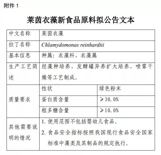 新食品原料萊茵衣藻公開(kāi)征求意見(jiàn)